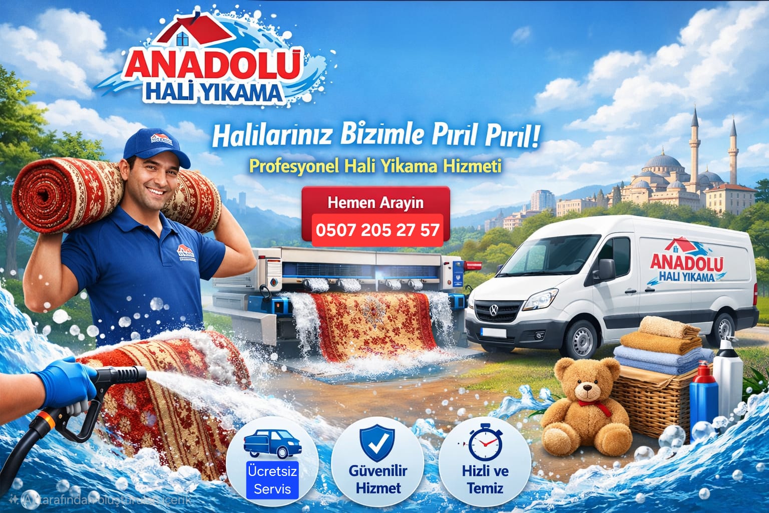Hemen arayın, ücretsiz servis avantajından yararlanın, halılarınız profesyonel temizlikle yenilensin.